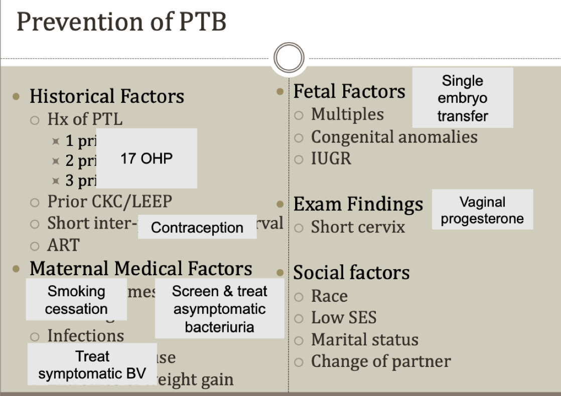 Management of preterm labor involves administering steroids for fetal benefits (consideration of tocolysis), administering PCN for GBS chemoprophylaxis, and administering magnesium for fetal neuroprotection