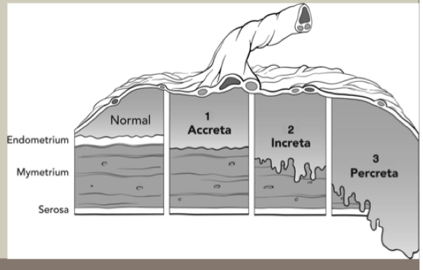 Placenta accreta is when the placenta grows too deeply into the uterine wall that commonly results from placenta previa