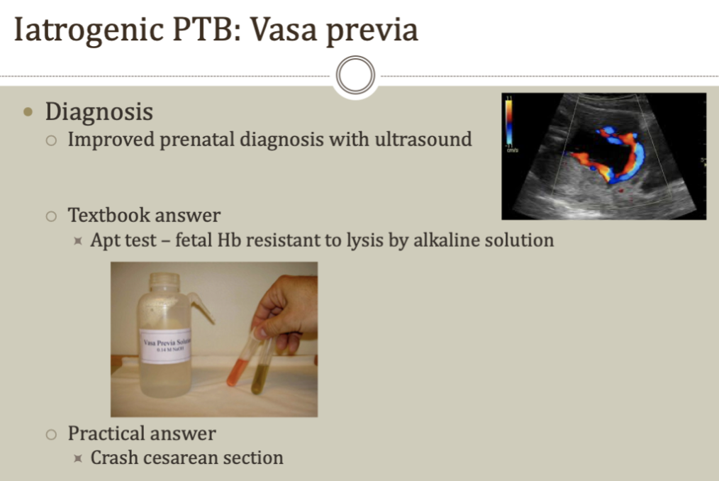 Apt test demonstrating fetal Hb resistant to lysis by alkaline solution is vasa previa
