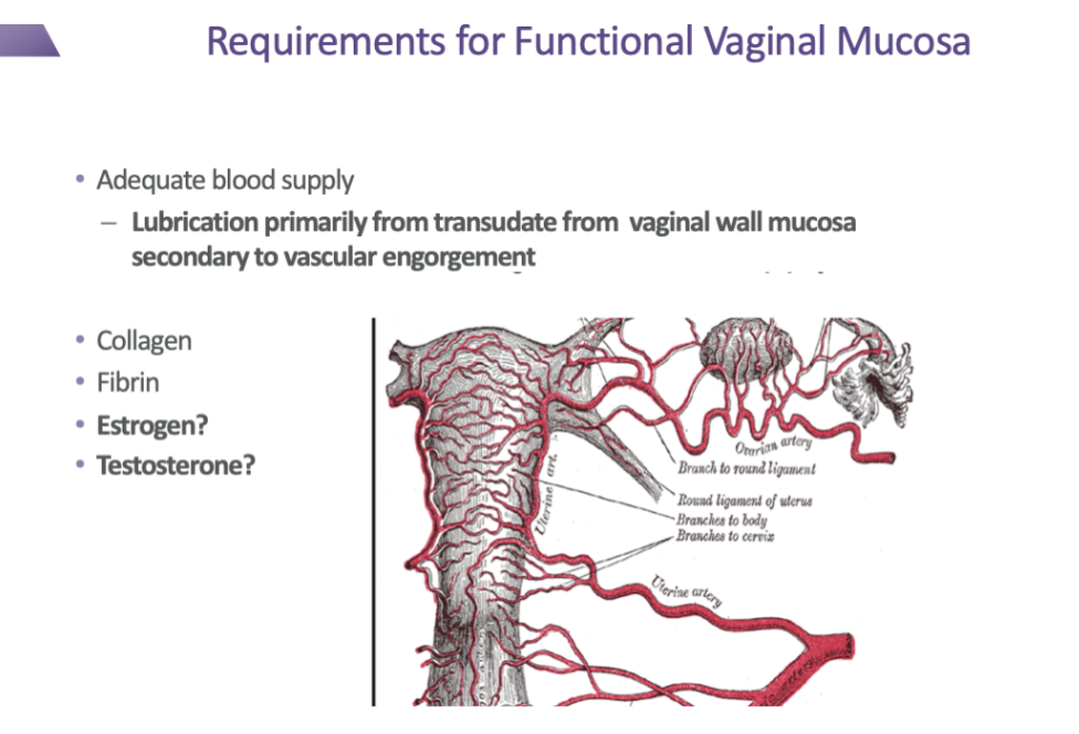 Requirements for a functional vaginal mucosa are adequate blood supply, estrogen, and testosterone