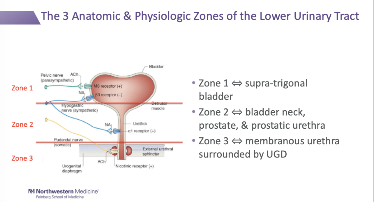 3 anatomic / physiologic zones of the lower urinary tract