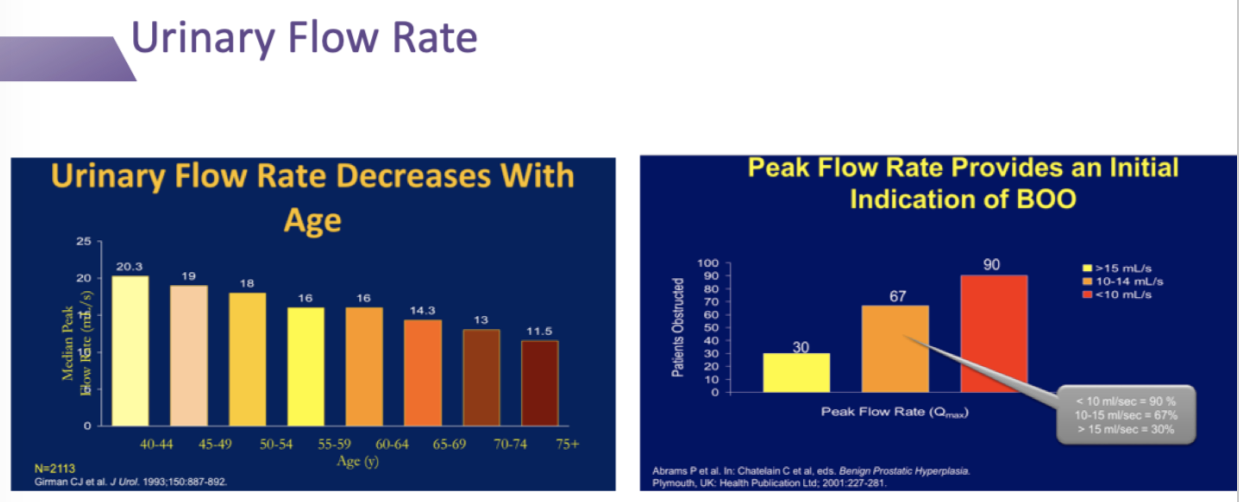 Urinary flow rate decreases with age