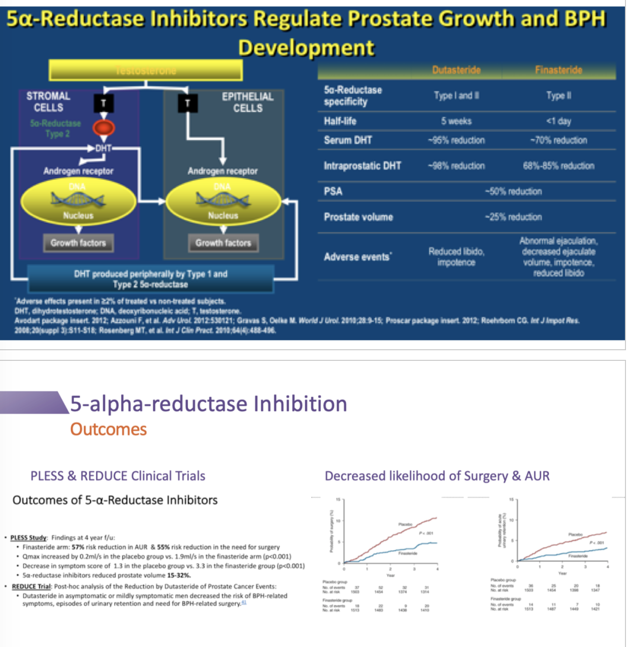 5a-reductase inhibitors decrease likelihood of surgery and acute urinary retention in treatment of BPH