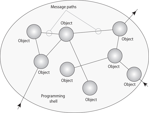 What object-oriented programming term or concept is illustrated in the graphic that follows? pic of objects passing messages within a shell bubble A. Methods B. Messages C. Abstraction D. Data hiding