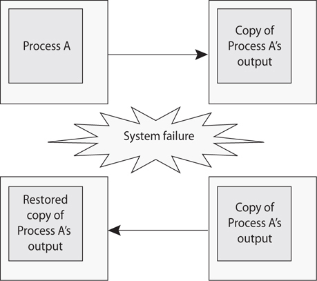 Databases and applications commonly carry out the function that is illustrated in the graphic that follows. Which of the following best describes the concept that this graphic is showing? process A -> copy of process A’s ouput <<>>> Retored copy of process A’s output
