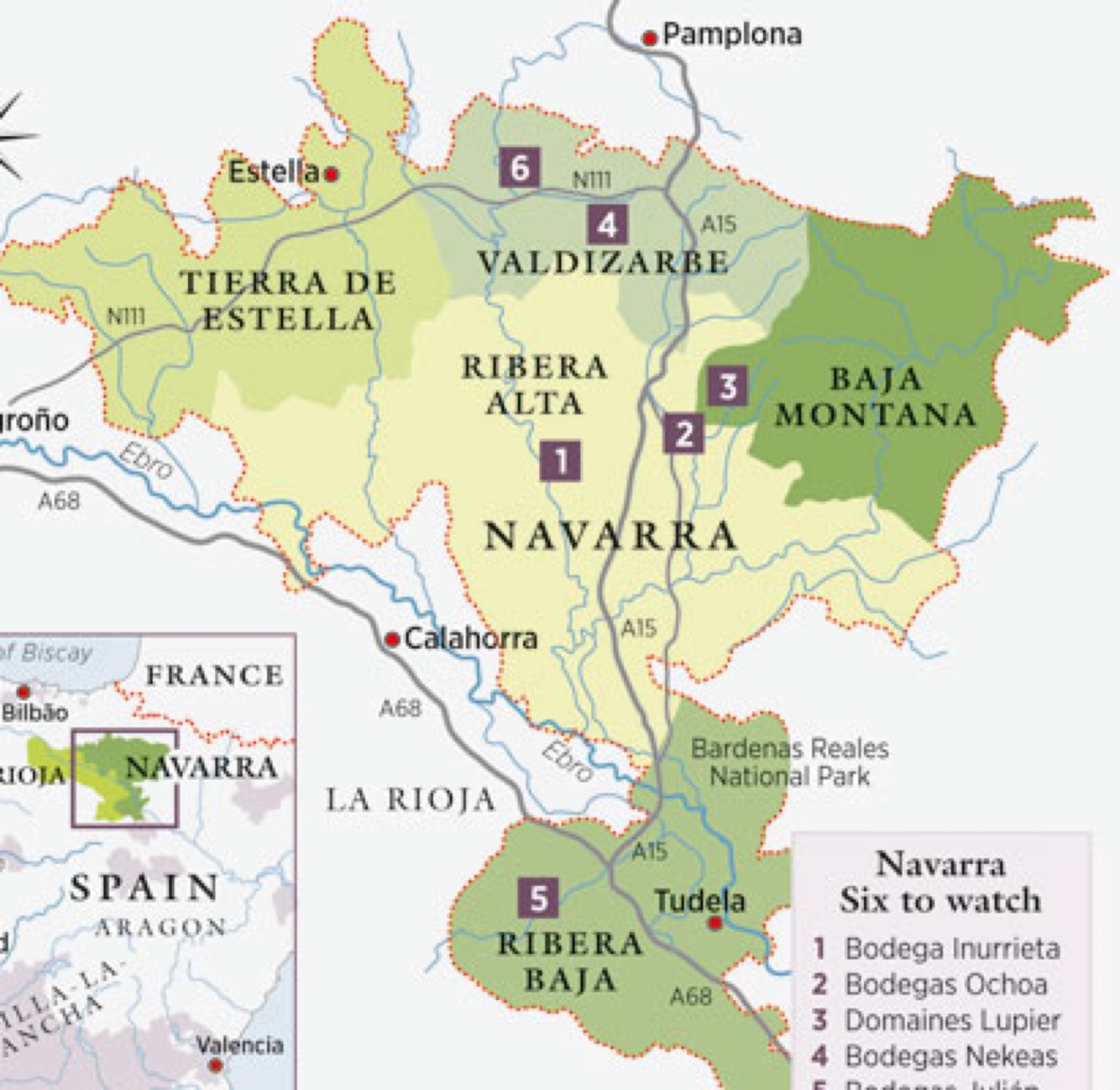 Navarra Bodegas Otazu (DP) Prado de Irache (DP Senorio de Arinzano (DP) Technically some of Rioja DOCa spills into Navarra