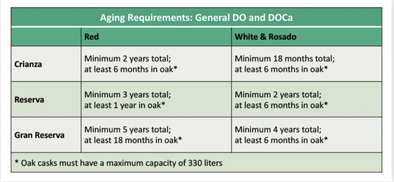What are the general Spanish aging requirements for wines labeled Crianza?