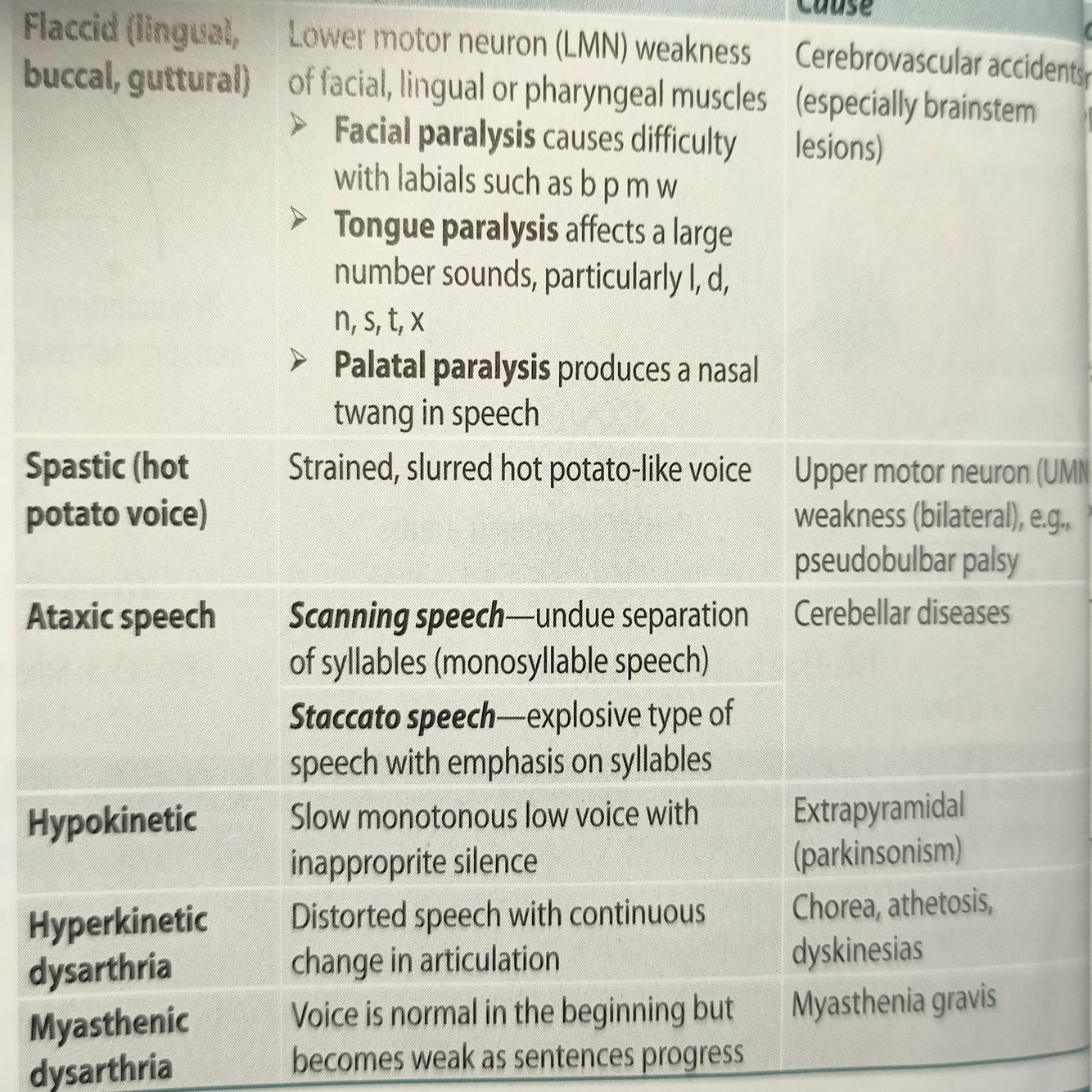 Types of DYSARTHRIA