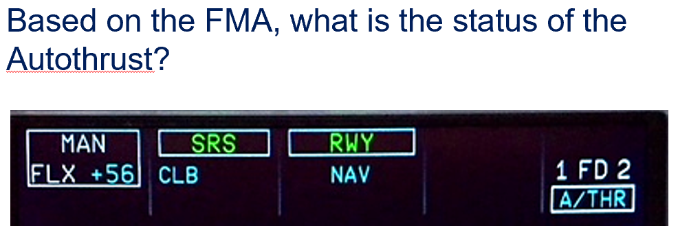 A/THR is active (white A/THR on FMA) after the Thrust Lever is moved to the CLB detent.