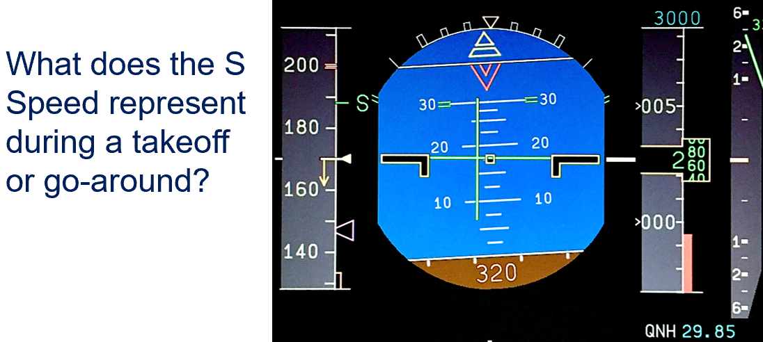 During Acceleration, S Speed is defined as Minimum Flap Retraction speed when the Flap Handle is in position 1. During acceleration it is the lowest speed to select Flaps 0.