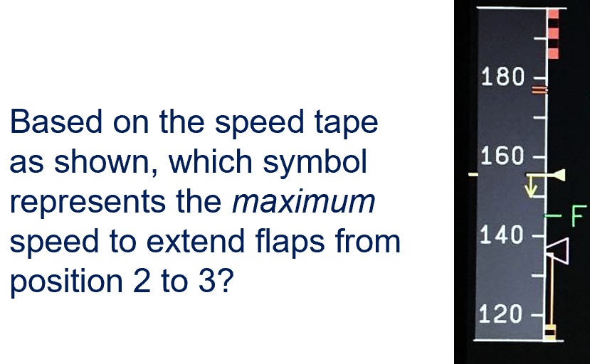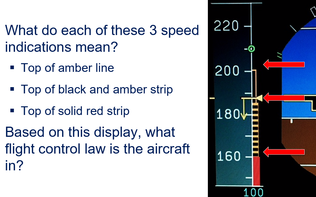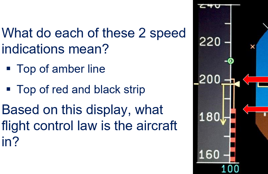 Amber “=“ sign represents Vfe next (the maximum speed corresponding to the next flap lever position)