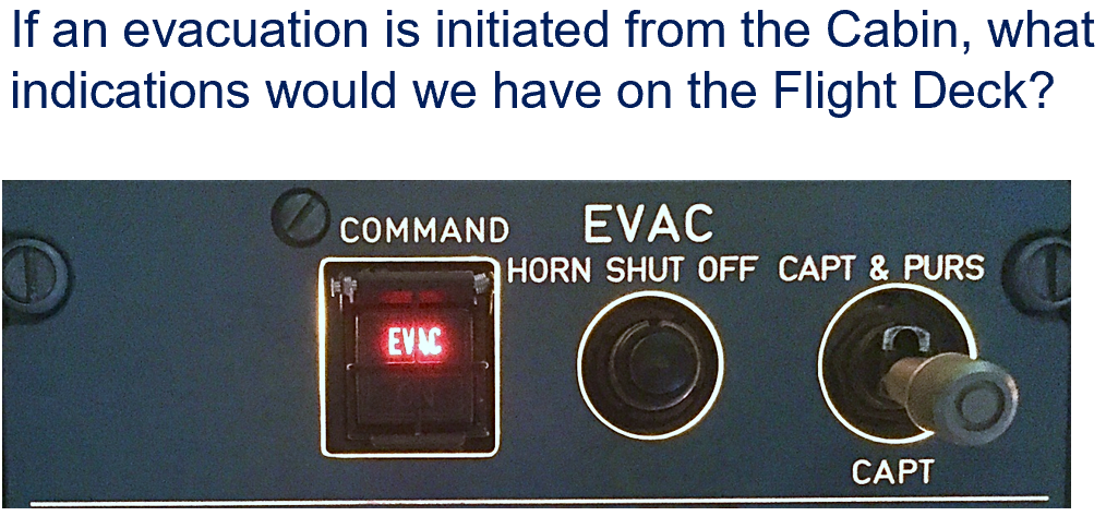 The signal will only be apparent in the Flight Deck and the alert will only sound in the Flight Deck for 3 seconds, the EVAC light flashes.