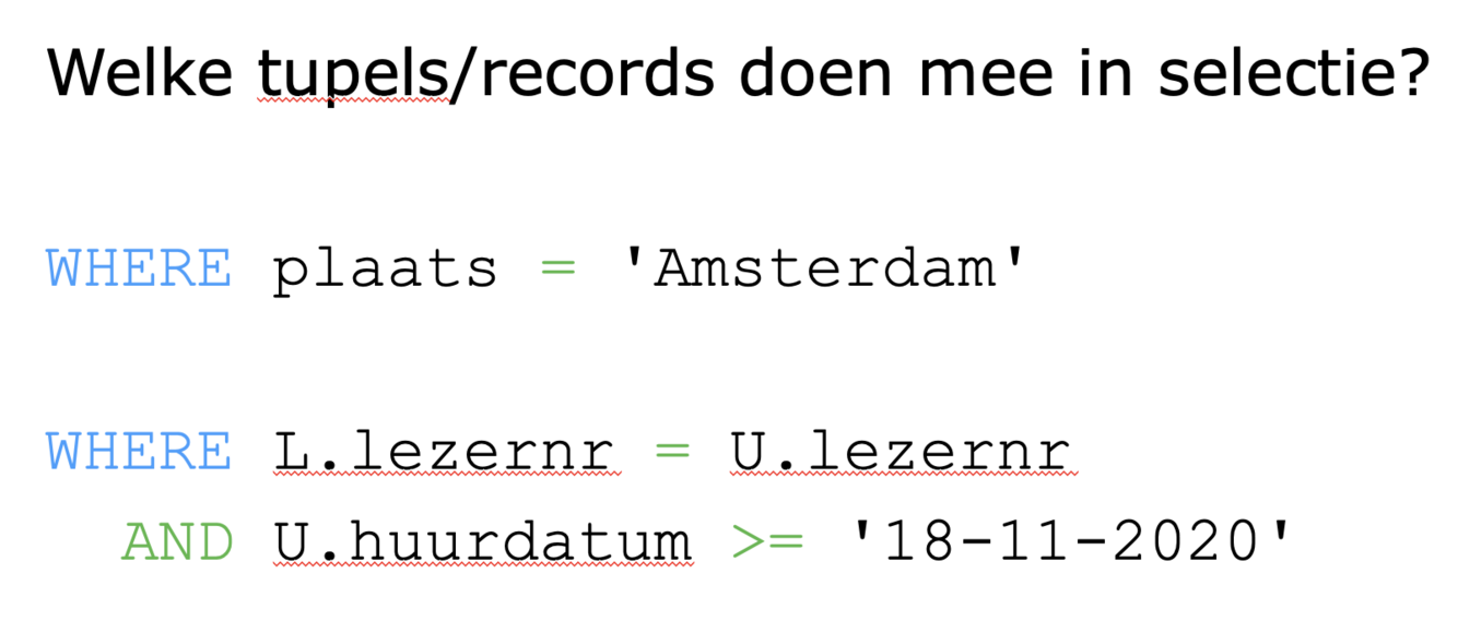 SQL gebruik WHERE