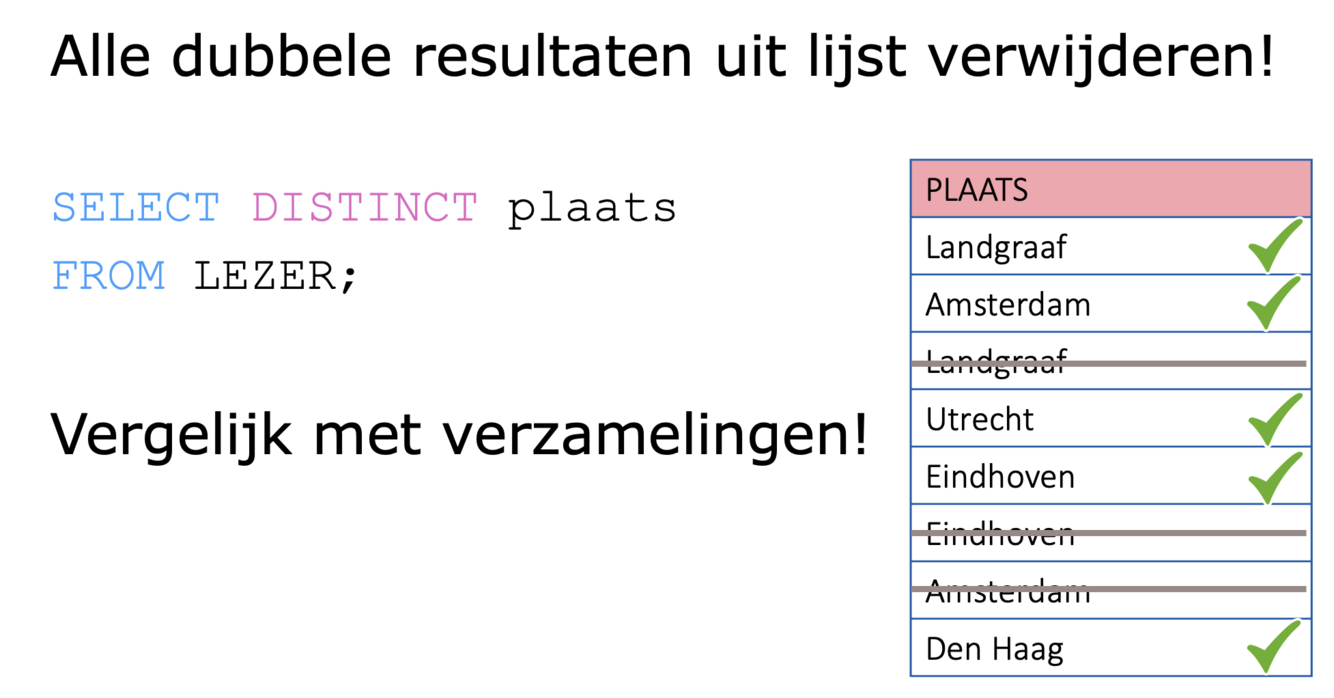 SQL gebruik DICTINCT