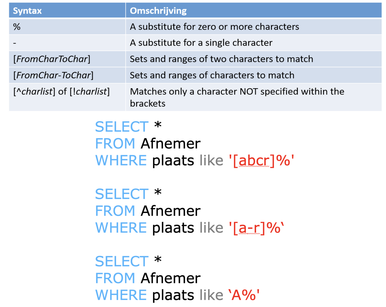 SQL Wildcards