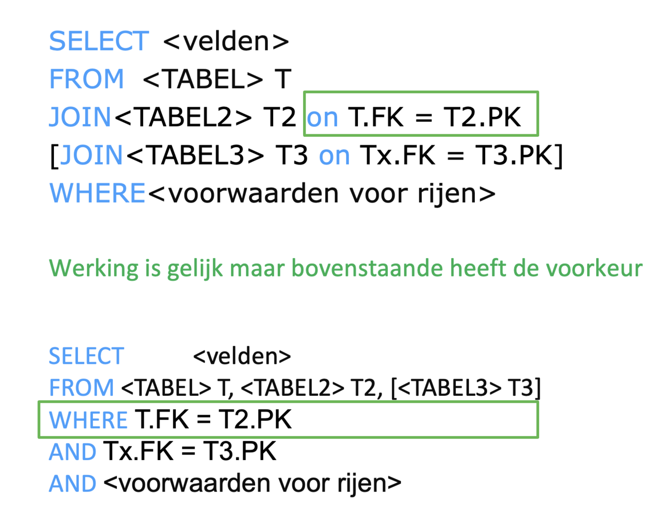 SQL gebruik FROM/JOIN