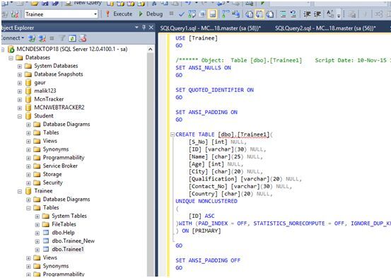 Now, this column does not allow null values and duplicate values. You can try inserting values to violate these conditions and see what happens. A table can have only one Primary key. Multiple columns can participate in the primary key.