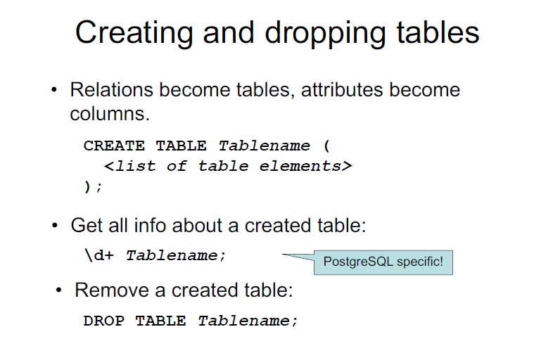 How to Create and Drop Tables?