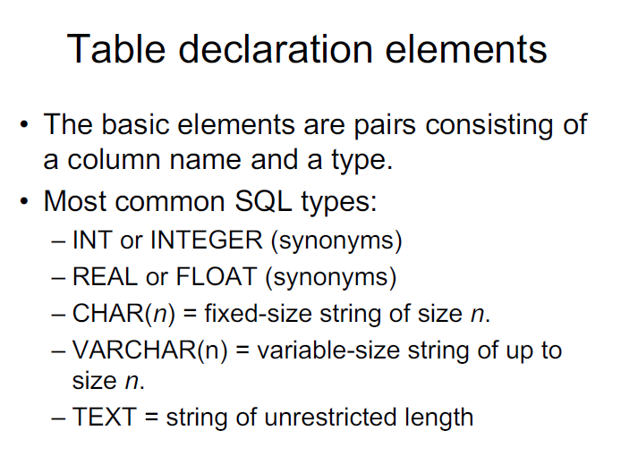 What are Table declaration elements?