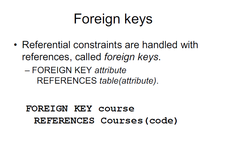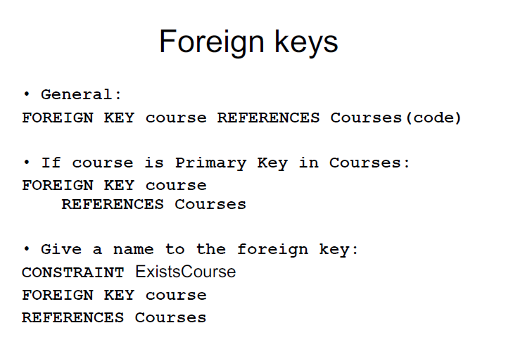 course CHAR(6) REFERENCES Courses,
