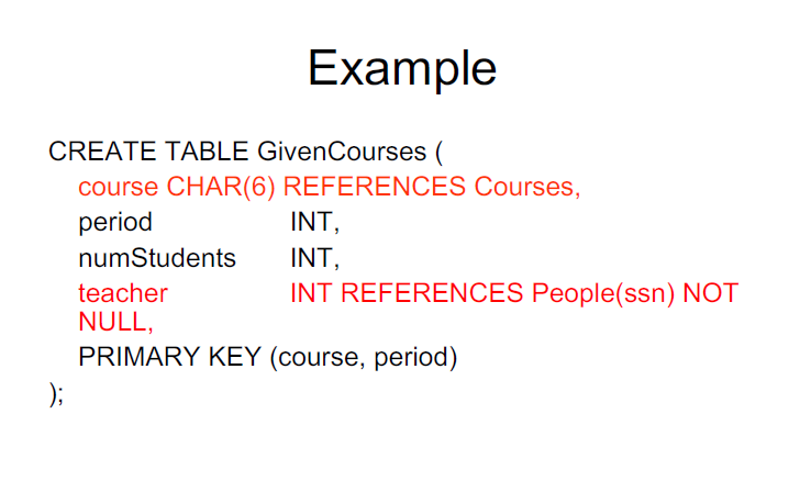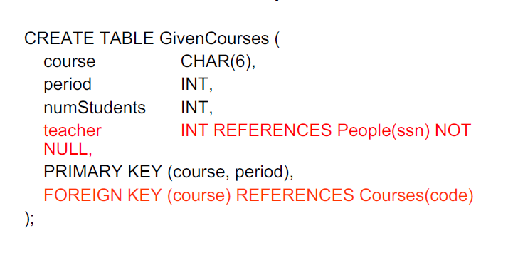 teacher INT REFERENCES People(ssn) NOT