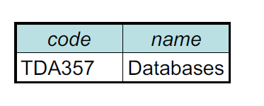 – Capitalized marks the name of a table.