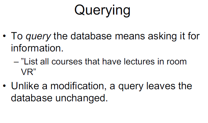 What is a Query? What is the difference between query and modifications?