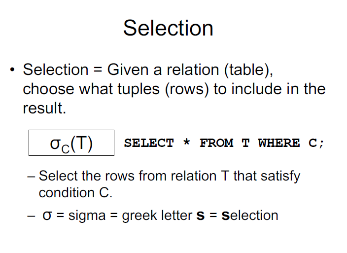 Explain Selection (Relational Algebra).