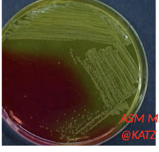 This is S aureus. It ferments manitol and changes the color of the agar from red to yellow.