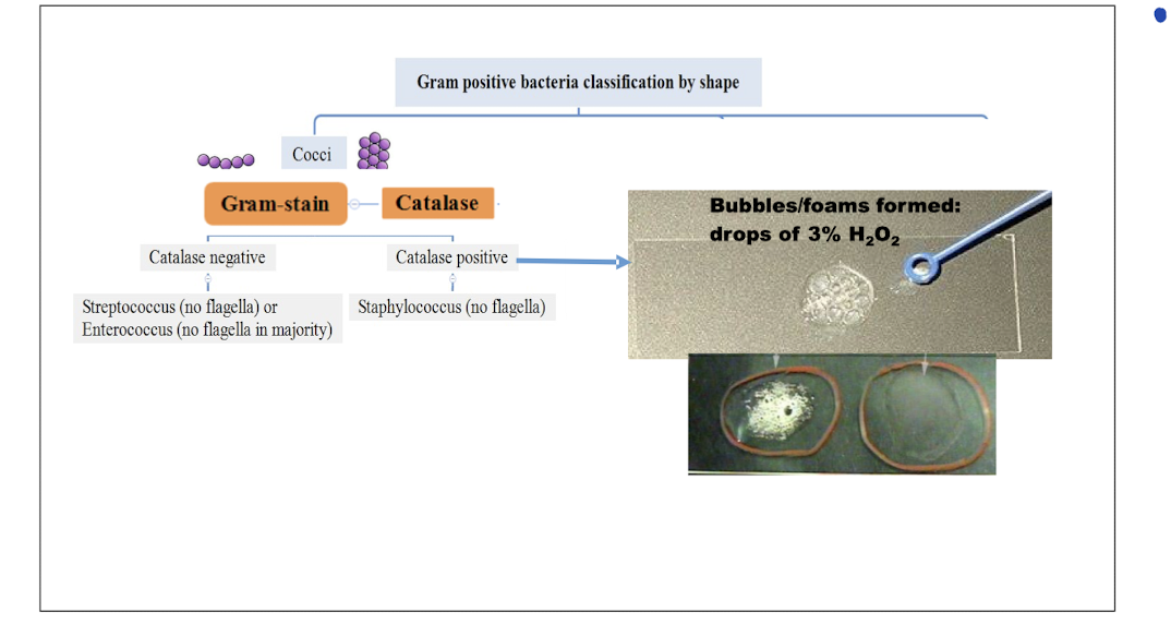 Gram positive cocci arranged in grape-like clusters • Facultative anaerobe • Non-motile (non-flagellated) • Non-spore forming • Catalase positive (detoxify H2O2) • Grow on media containing high salt (> 6.5-10%)
