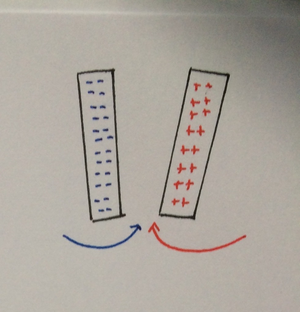 depending on their charge, the dust particles are attracted to the oppositely charged collceting plates