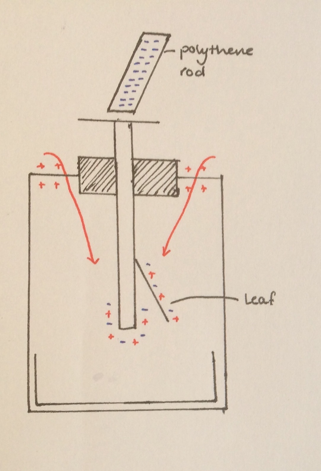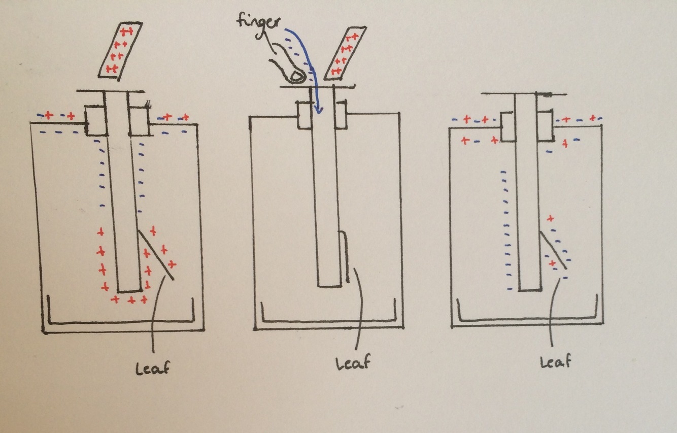 remove the finger then remove the rod. this means we have an excess of negative charges which makes the leaf rise