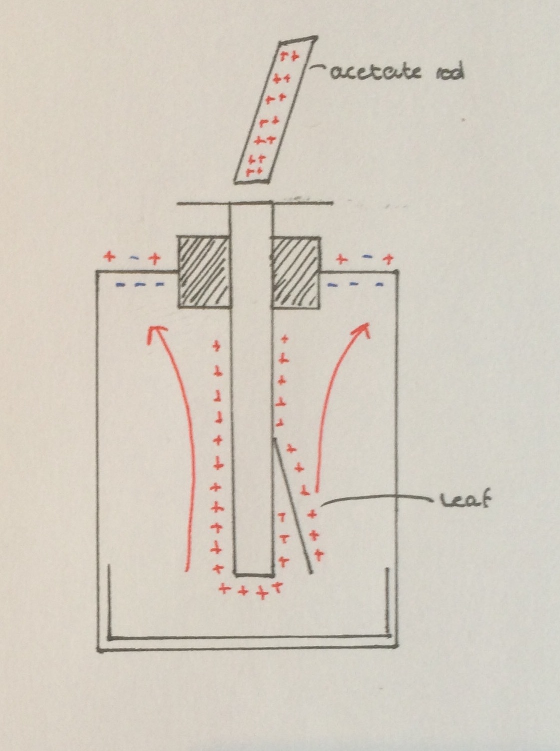 electrons in the GLE are attracted to the acetate rod and move upwards