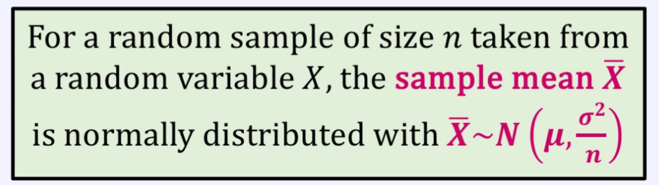 What is the distribution for the sample mean for a random size of n taken from a random variable X?