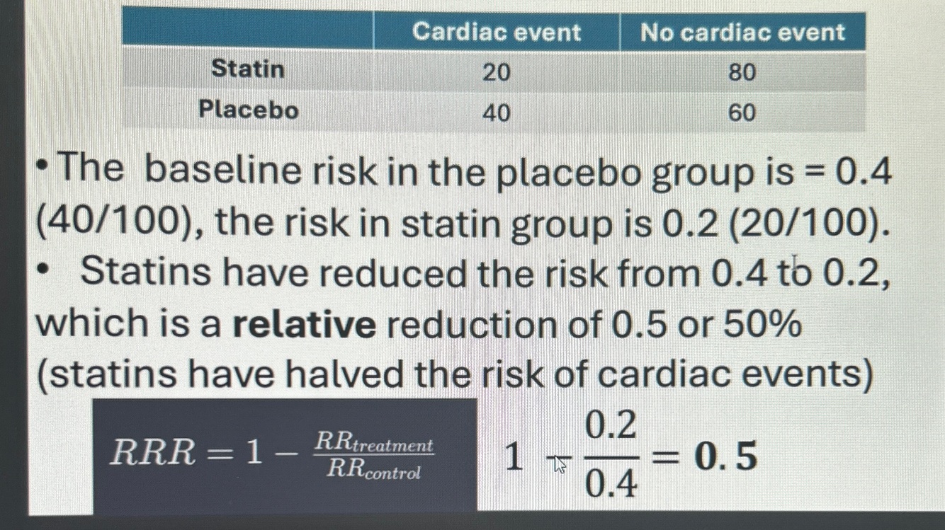 Relative risk reduction calculation