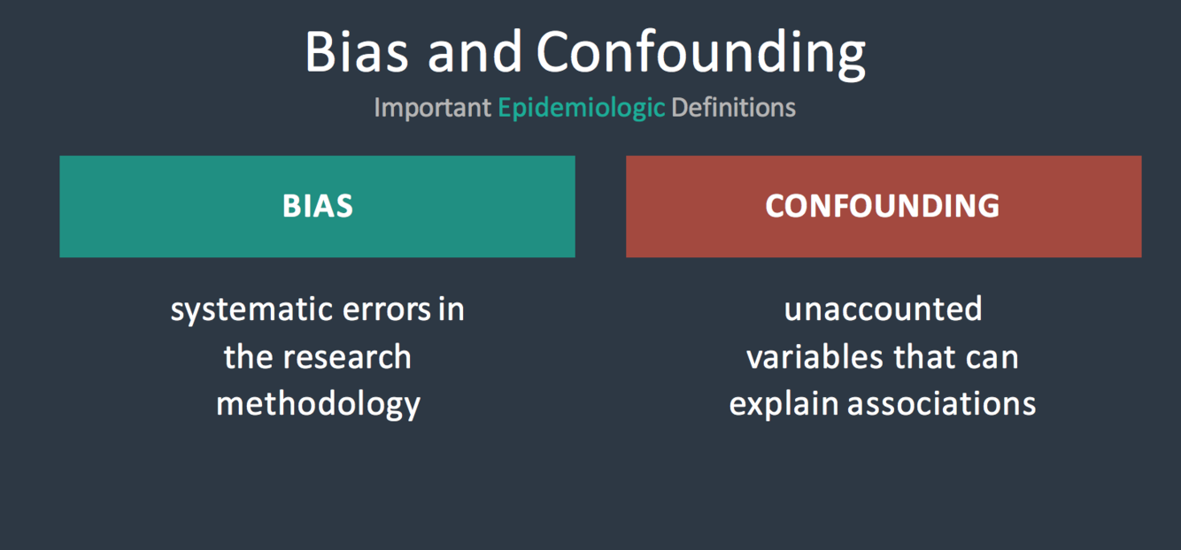 Define Bias and Confounding
