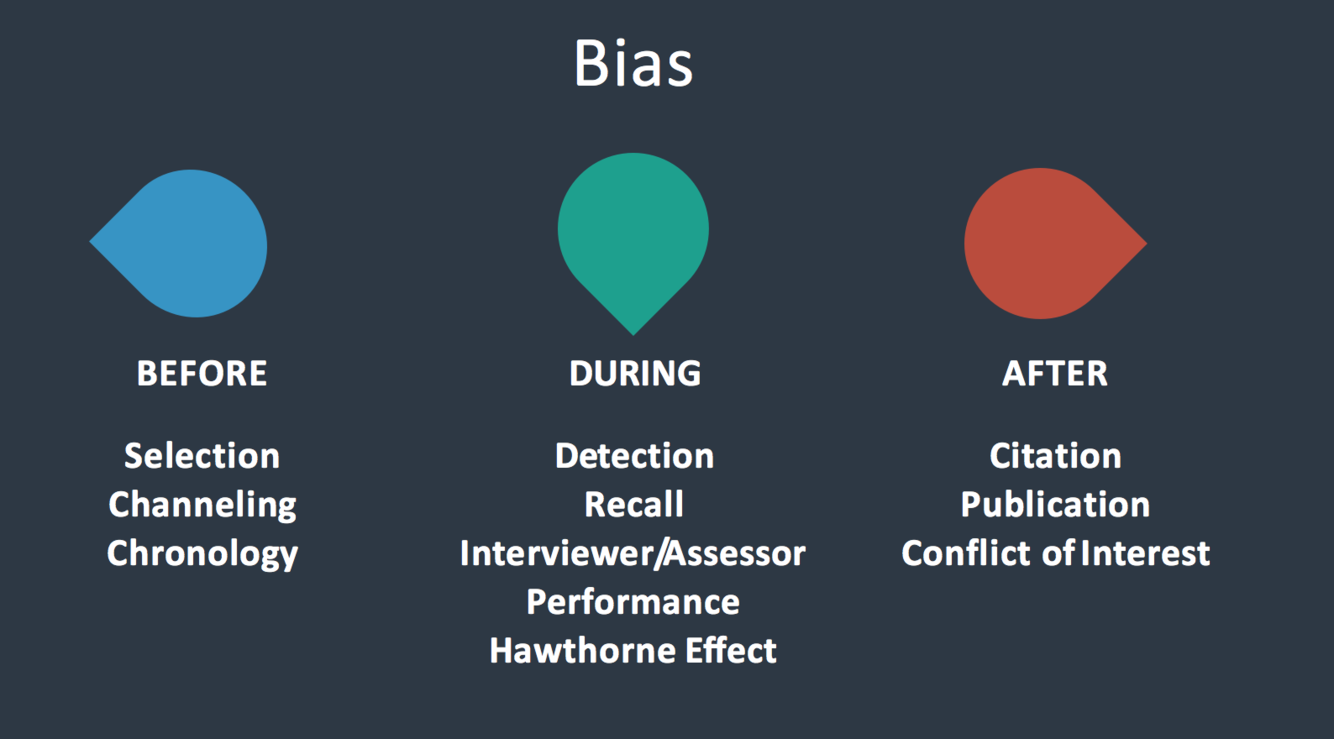 List some examples of before, during and after examples of Bias