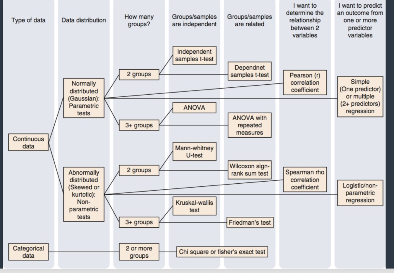 write the flowchart for statistical analysis based on study design