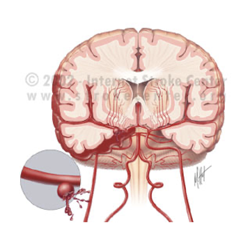 location is between the lateral sulcus between the frontal and temporal lobes and is part of the circle of Willis