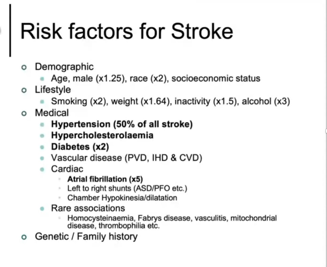 What factors would you investigate for person with a stroke whos under 50? [4]