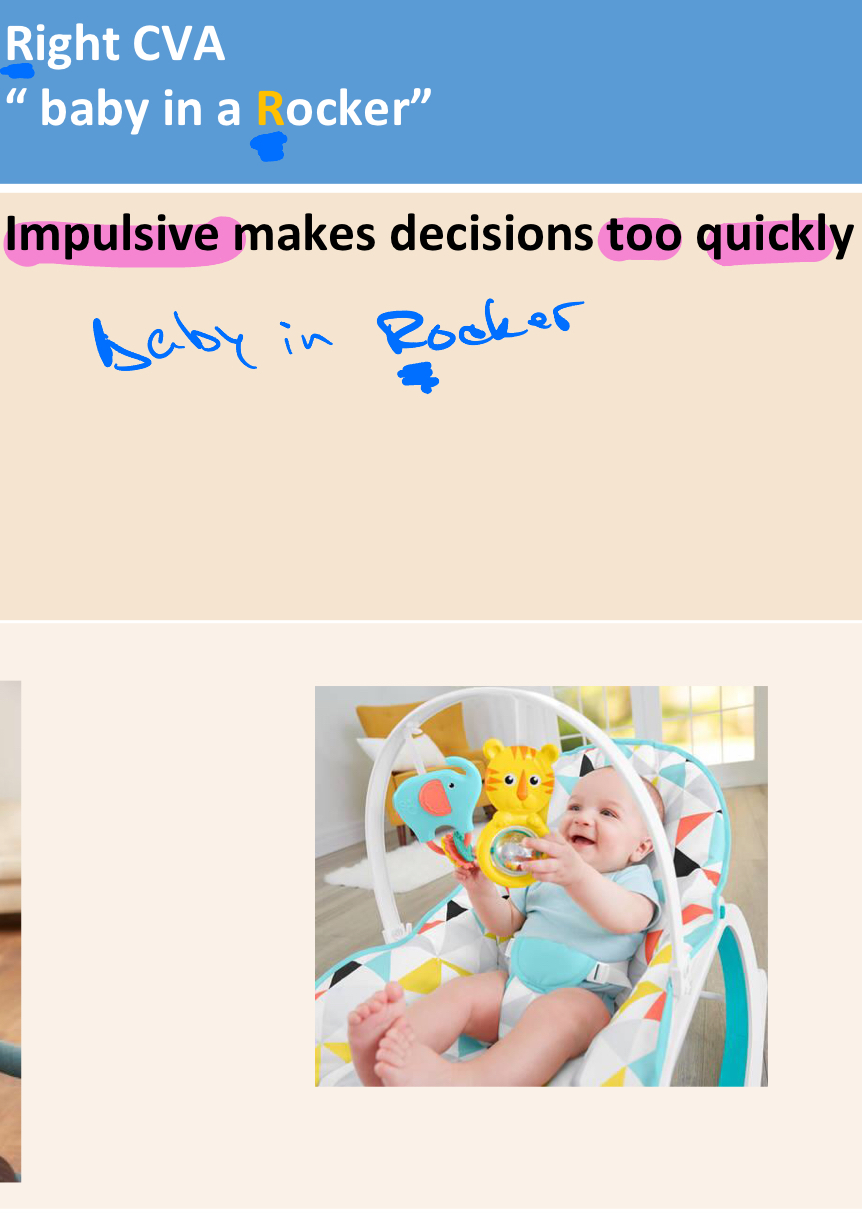 Impulsive makes decisions too quickly–> Baby in a Rocker