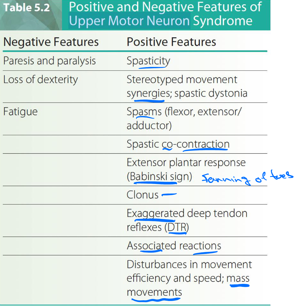 Positive and Negative Features of Upper Motor Neuron Syndrome