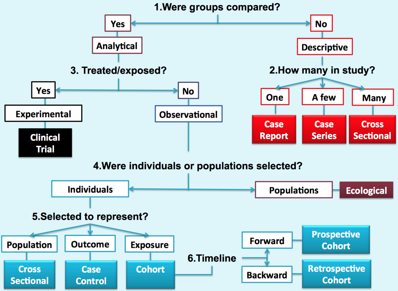 ecological studies (populations are compared) and groups of individuals are compared.