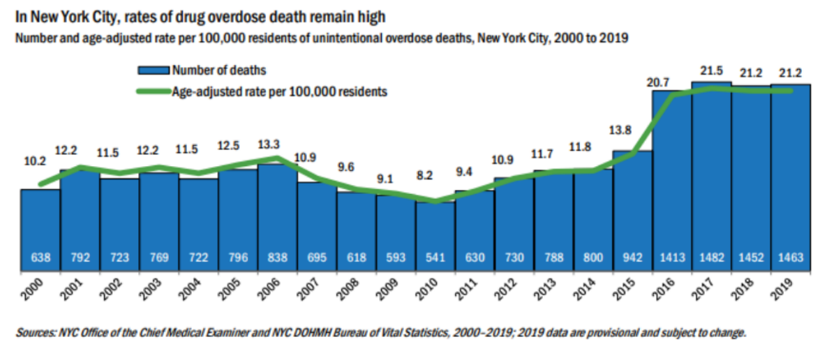 Why have unintentional drug overdoses increased in NYC?