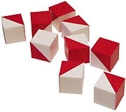 reproduire des figures à l’aide de quatre, puis neuf cubes dont les faces sont totalement blanches, totalement rouges, ou rouges et blanches