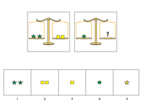 rééquilibrer une balance à plateau avec des symboles ayant chacun une valeur et ce parmi une série de cinq possibilités