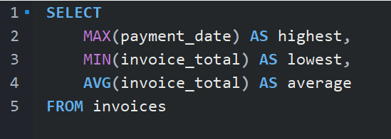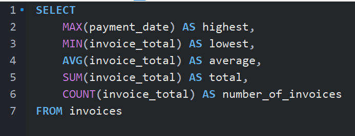 MAX, MIN, AVG, SUM, COUNT