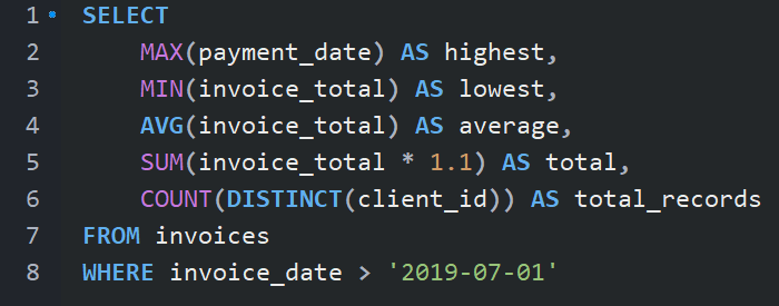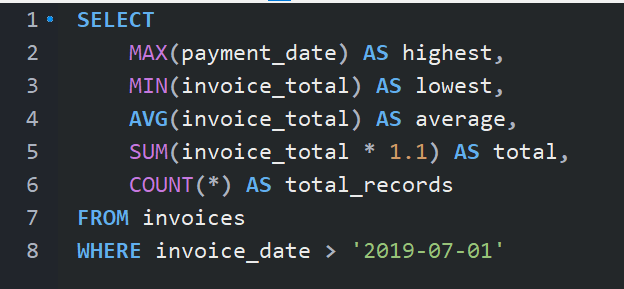 SUM(invoice_total * 1.1) AS total