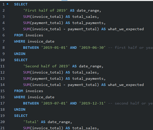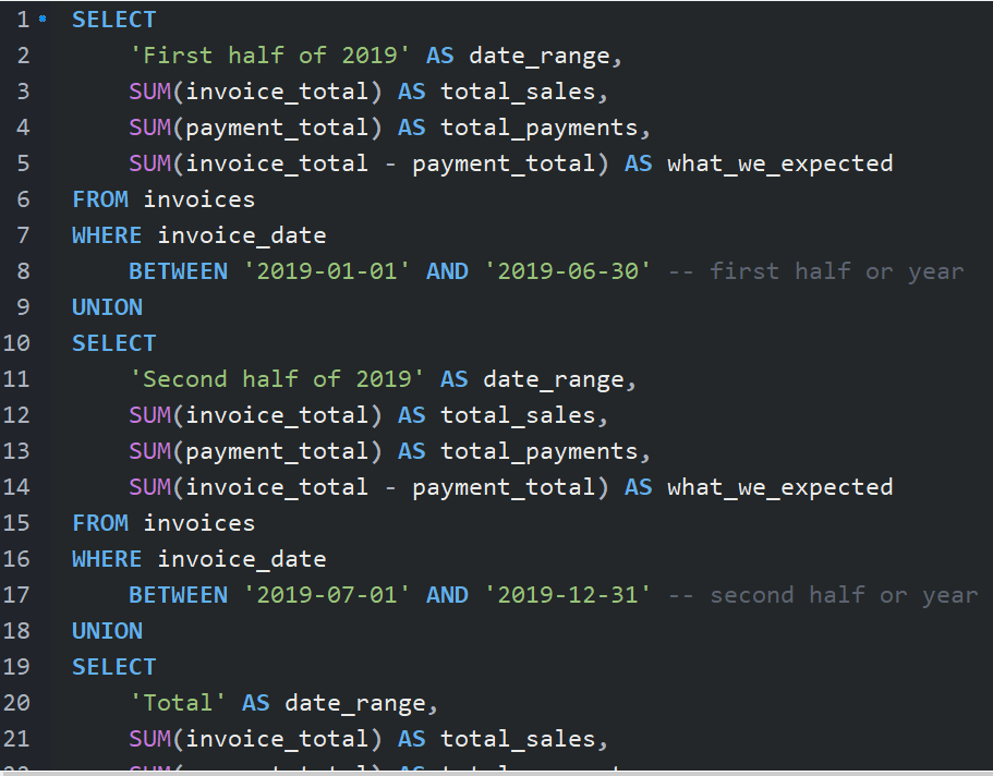SUM(invoice_total) AS total_sales,