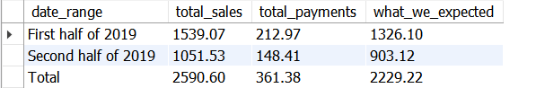 ‘First half of 2019’ AS date_range,